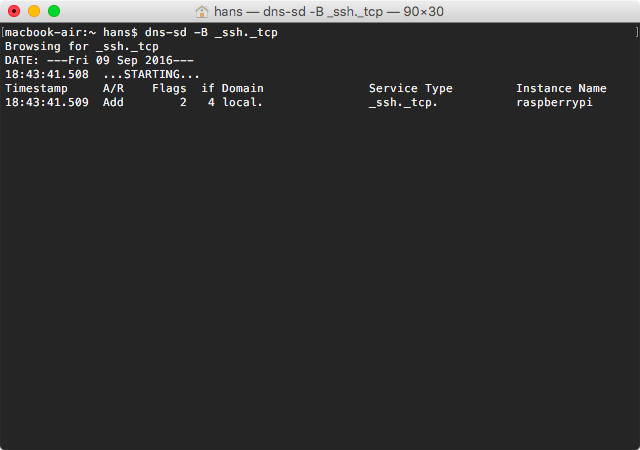 The provided image defaults to booting the Raspberry Pi with the hostname raspberrypi so identifying and connecting to it is simple. The image also announces its SSH service over DNS-SD using the _ssh._tcp service type to aid you in locating it.